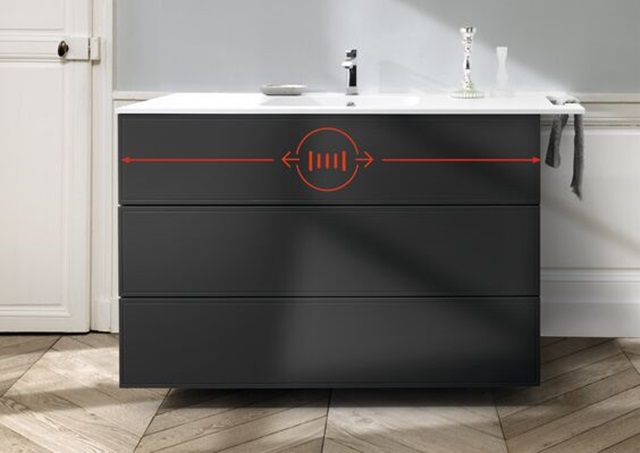 67 cm breite Schubkästen? Kein Problem und ohne Aufpreis. Unter Berücksichtigung aller Besonderheiten Ihres Raumes erarbeitet Ihr Konzeptplaner Ihre Lösung und setzt sie in 3D um. Zufrieden? Unsere Werke in Deutschland und Frankreich übernehmen die Herstellung der Badmöbel, die millimetregenau zu Ihnen passen.