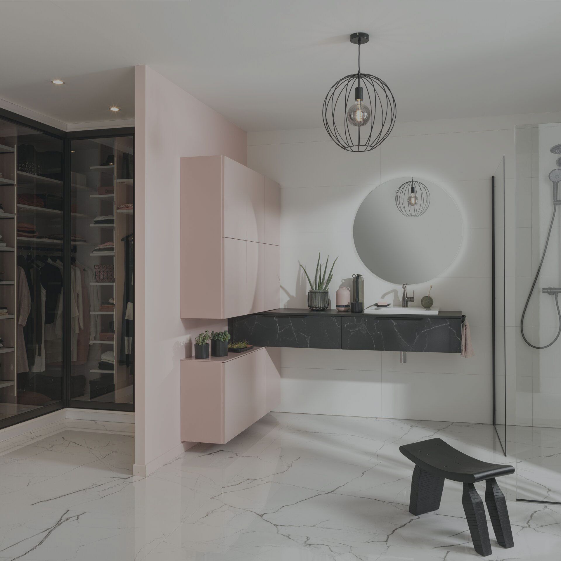 Gönnen Sie sich eine Pause der Entspannung und Gelassenheit in einem schönen, modernen Bad auf Maß im skandinavischen Stil. Die von unseren Designern entworfenen Waschbeckenunterschränke oder Wandschränke zeichnen sich durch ihre grafischen Linien in Kombination mit Materialien aus, die weder Feuchtigkeit noch Spritzer fürchten. Sie sind voll von verstecktem und raffiniertem Stauraum hinter Fronten mit sorgfältig ausgewählter Oberflächenausführung. Grund genug Ihre Badwäsche und Toilettenartikel zu lagern und sogar mit Bilderrahmen und Grünpflanzen zu dekorieren. Pastelltöne und pures Weiß, subtil verbunden mit hellen Holztönen, kristallisieren sich als bevorzugte Farbtrends heraus. Mit Schmidt verfügen Sie über alle Elemente um ein Bad zu modernisieren!