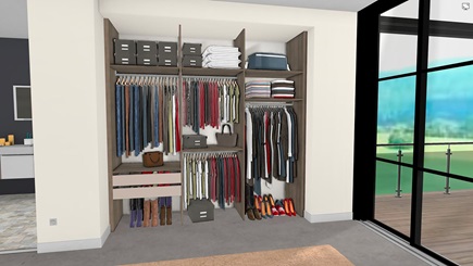 Möchten Sie eine Idee von Ihrer zukünftigen Ankleide bekommen um sicher zu sein, dass auch all Ihre Accessoires und Kleider hineinpassen? Unsere Creativ'Box, ein online 3D Simulator, ermöglicht Ihnen Ihr Projekt zu schätzen Möglichkeiten der Individualisierung, die Schmidt im Universum der Ausstattungsmöglichkeiten mit Maßanfertigung anbietet, zu testen. Schranksysteme, Regale, offene Nischen, mit Schiebetüren oder in einer Ecke, visualisieren Sie den Stil Ihrer Ankleide in einem realistischen Lebensraum und testen Sie die Kombinationen von Farben, Türen und Ausstattungsmöglichkeiten!