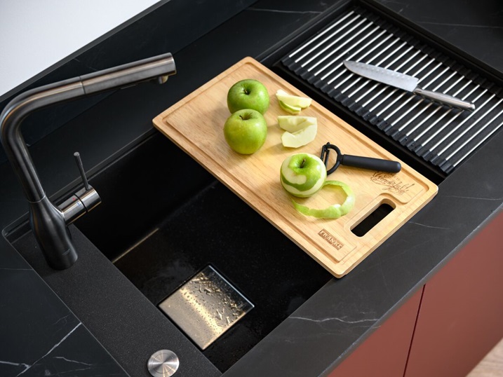 - Profitieren Sie von einem Schneidbrette auf dem Becken, ästhethisch und perfekt passend.