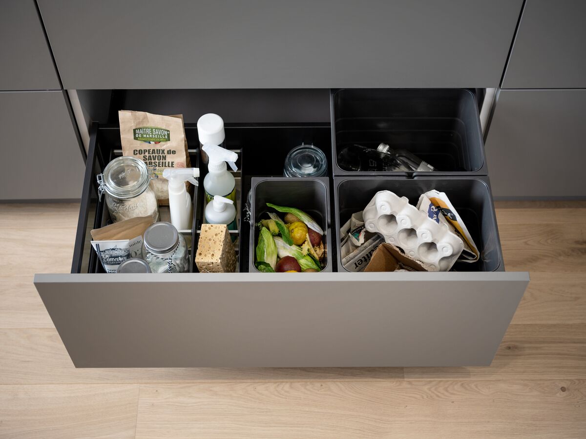 Gerade beim Thema Müll ist Ordnung angesagt, denn Mülltrennung ist ein ernstzunehmendes und wichtiges Thema für unsere Umwelt. Um den Überblick zu behalten, bekommen Sie bei Schmidt spezifische Sortierbehälter für alle Arten von Abfall. Die Behälter sind tief genug, um das Volumen des Küchenschranks optimal auszunutzen – und sorgen im selben Schritt dafür, dass Sie nicht täglich den Mülleimer ausleeren müssen.