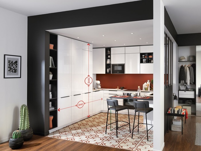 Unsere Kollektion von Unterschränken mit Auszug und Hängeschränken könen in der Breite angepasst werden um Ihren Raum zu optimieren. Unsere schönen Opti'Line Seitenschränke reichen vom Boden bis zur Decke, in Ihrer Wunschbreite. Vergessen Sie Abdeckböden von Schränken, die Staub fangen und räumen Sie alles, was Sie möchten in diesen gewonnenen Kubikzentimetern auf. Ein echtes Plus ohne Aufpreis um Ihren Raum auf den Millimetr zu maximieren.