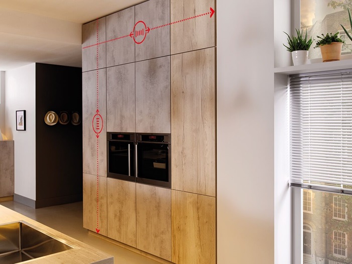Weil jeder Millimeter zählt, schafft Schmidt Maßanfertigung in allen 3 Dimensionen um Ihren Raum bestmöglich nutzen zu können und Ihnen noch mehr Stauraum bieten zu können: Höhe, Breite und Tiefe unserer Möbel sind maximiert in Ihrem Küchenraum.