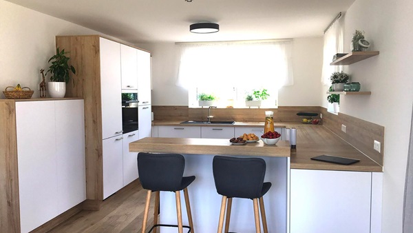Eine gute Wahl für kleine als auch große Räume ist eine Küche in L-Form. Diese lässt sich besonders flexibel gestalten. Platzieren Sie die Küche in L-Form in einem kleinen Raum ausschließlich an den Wänden, schaffen Sie zusätzliche Bewegungsfreiheit. In einem großen Raum hingegen lässt sich die Küche in L-Form freistehend platzieren. Durch diese Positionierung bietet Ihnen die Küche eine freistehende Arbeitsfläche oder einen Tresen.
