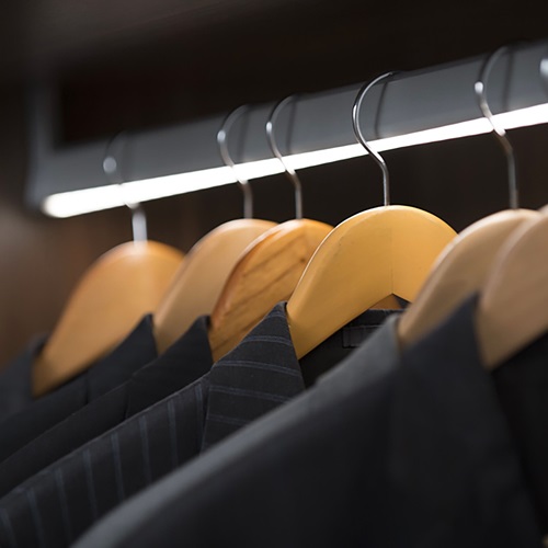 All das licht auf Ihrem Alltagshemd, perfekt integriert in einer Kleiderstange mit LED Band. Auf der Show-Room Seite ist Eleganz garantiert!