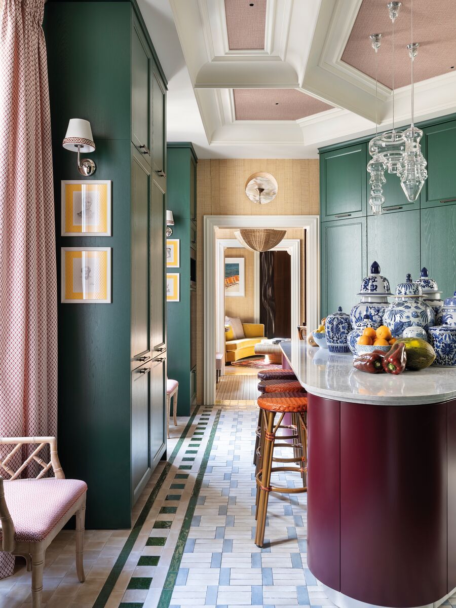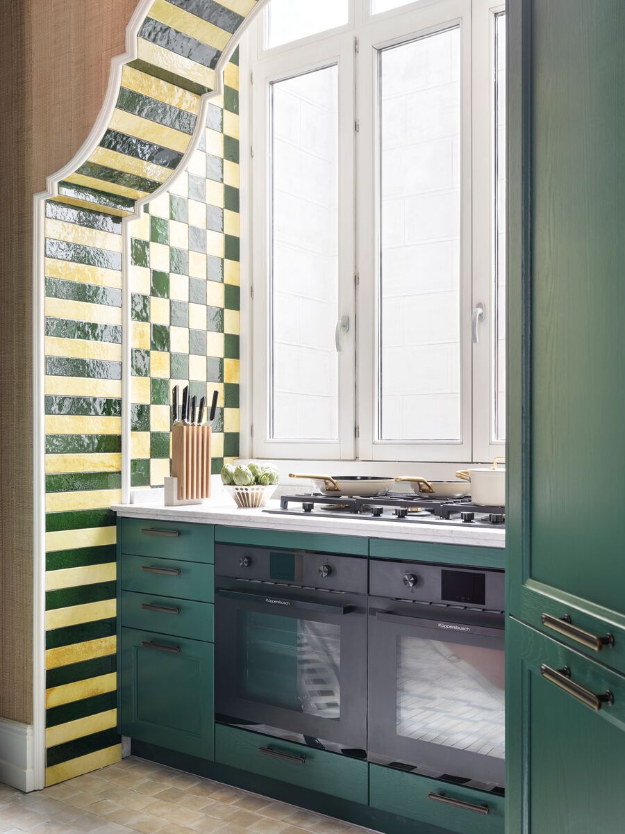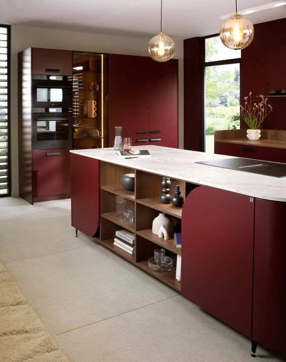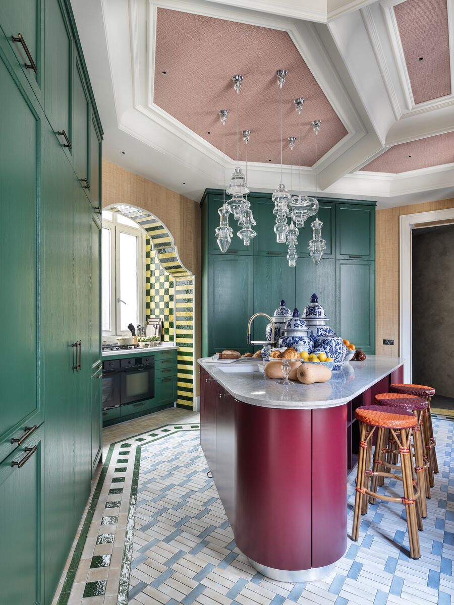 Esta cocina seduce con sus curvas y elementos gráficos que redondean los ángulos y suavizan la perspectiva.