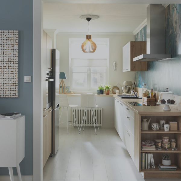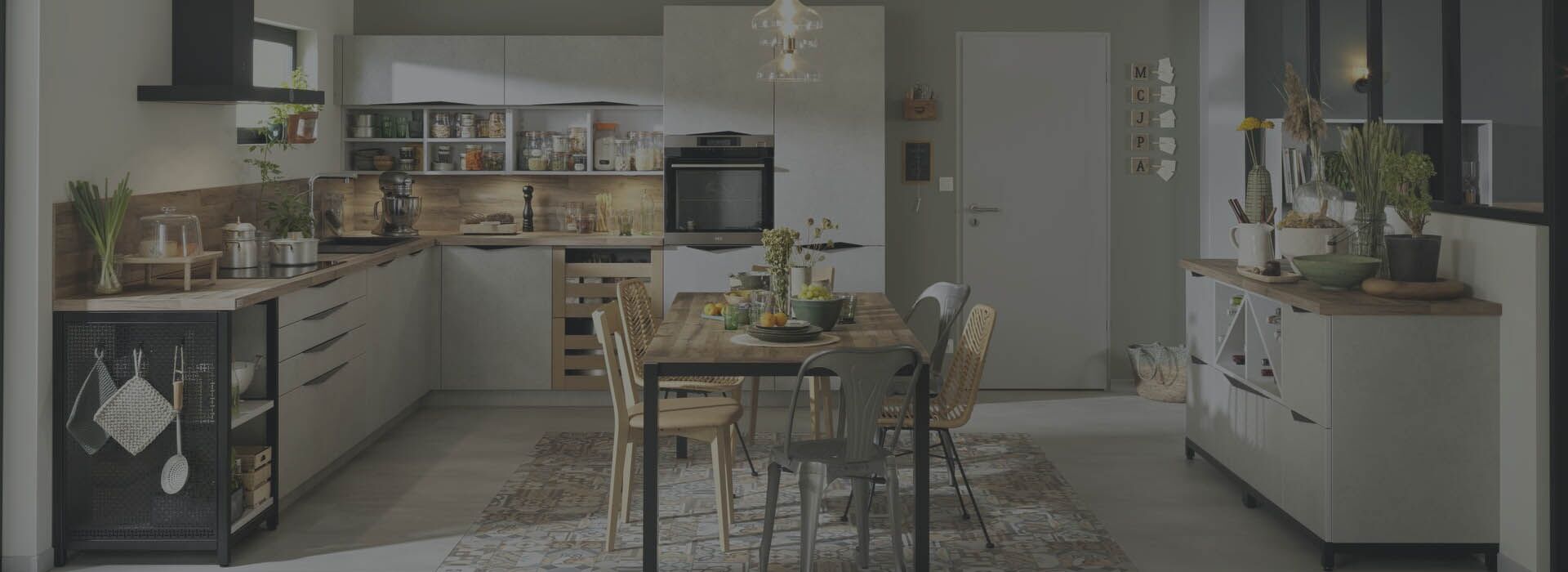 Hemos equipado esta cocina con un sistema de almacenaje ingenioso y minucioso: los armarios y el mueble sobre encimera con puerta corredera permiten esconder todos los pequeños electrodomésticos. ¡Lo más en términos de elegancia y equipamiento!