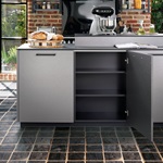 Toute votre vaisselle reste en place et accessible grâce à nos blocs et nos tiroirs, mais forcément ils seront plus chers qu'une simple étagère. Heureusement, votre concepteur n'économise pas son temps pour trouver la bonne équation espace/coût avec vous !