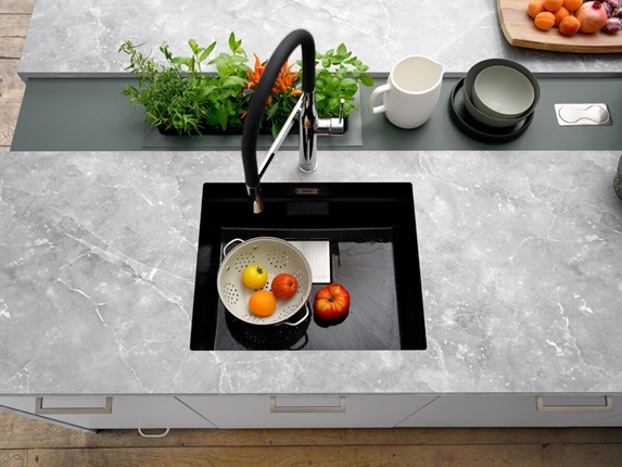 Envie de minéral … De solidité à toute épreuve et de haute performance… il est temps de penser au plan de travail en céramique. Rapprochez-vous… sa texture légèrement irrégulière la rend si naturelle et séduisante. La céramique résiste à la chaleur, aux rayures et à l’humidité.
