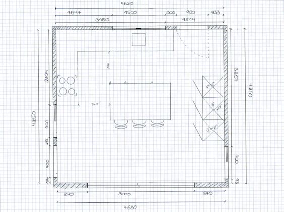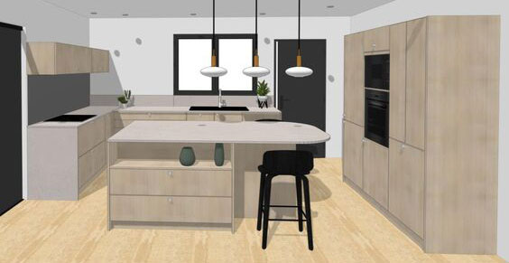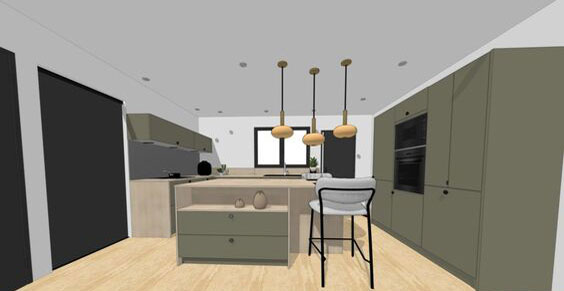 Après un dessin sur papier millimétré, Myrna a réalisé un plan plus détaillé sur le logiciel 3D. Après avoir revu quelques éléments de conception, Fanny a pu se projeter en réalité virtuelle dans la cuisine !