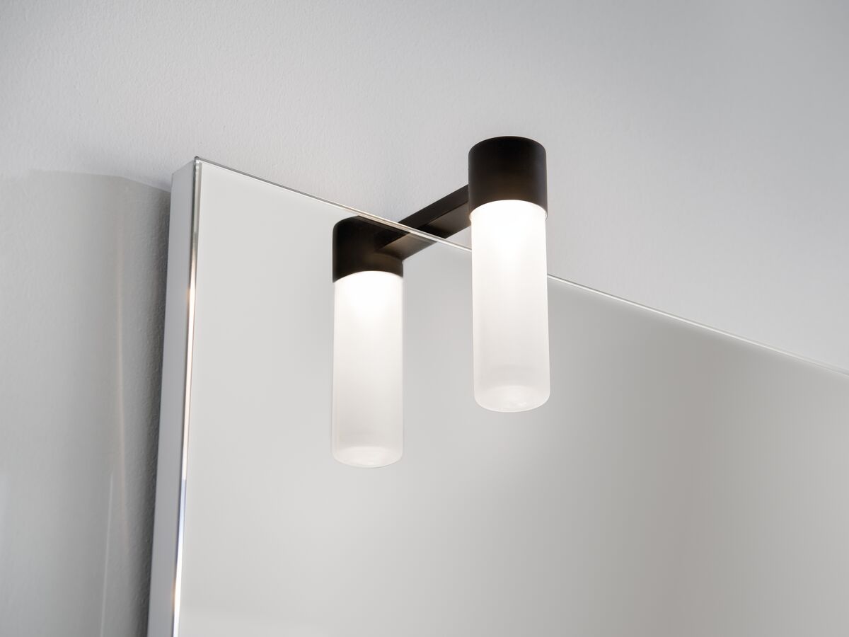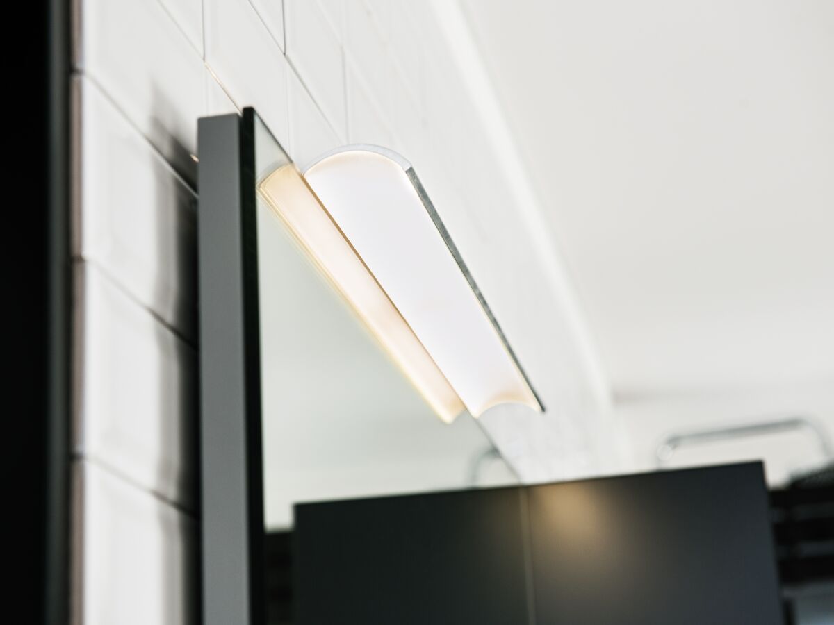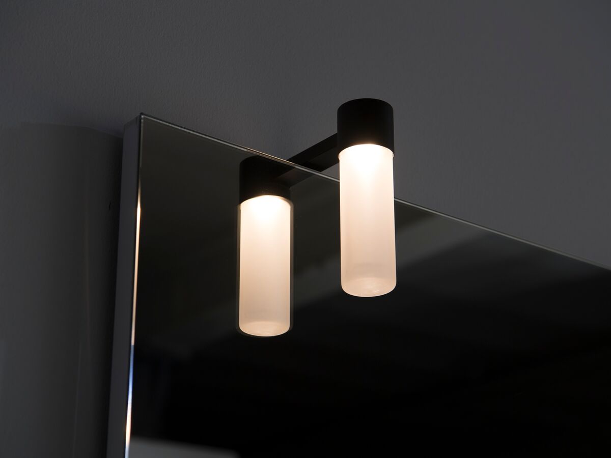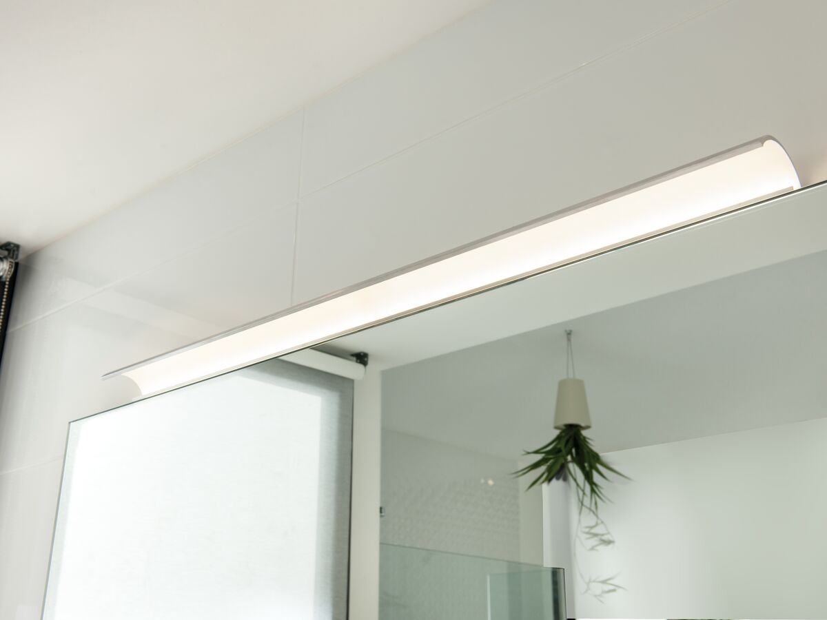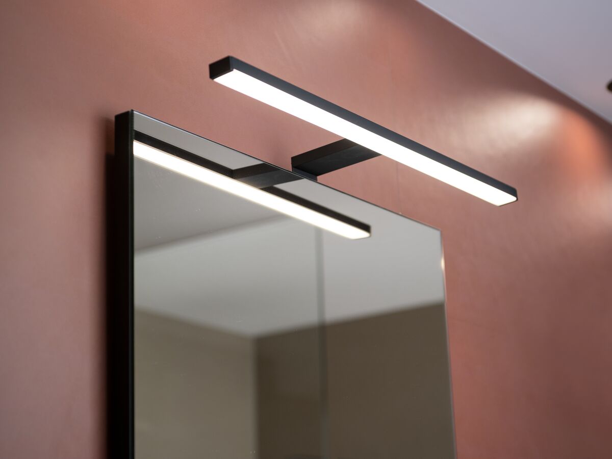 Lumière dirigée vers le miroir de salle de bains, idéale pour se maquiller ou se raser.