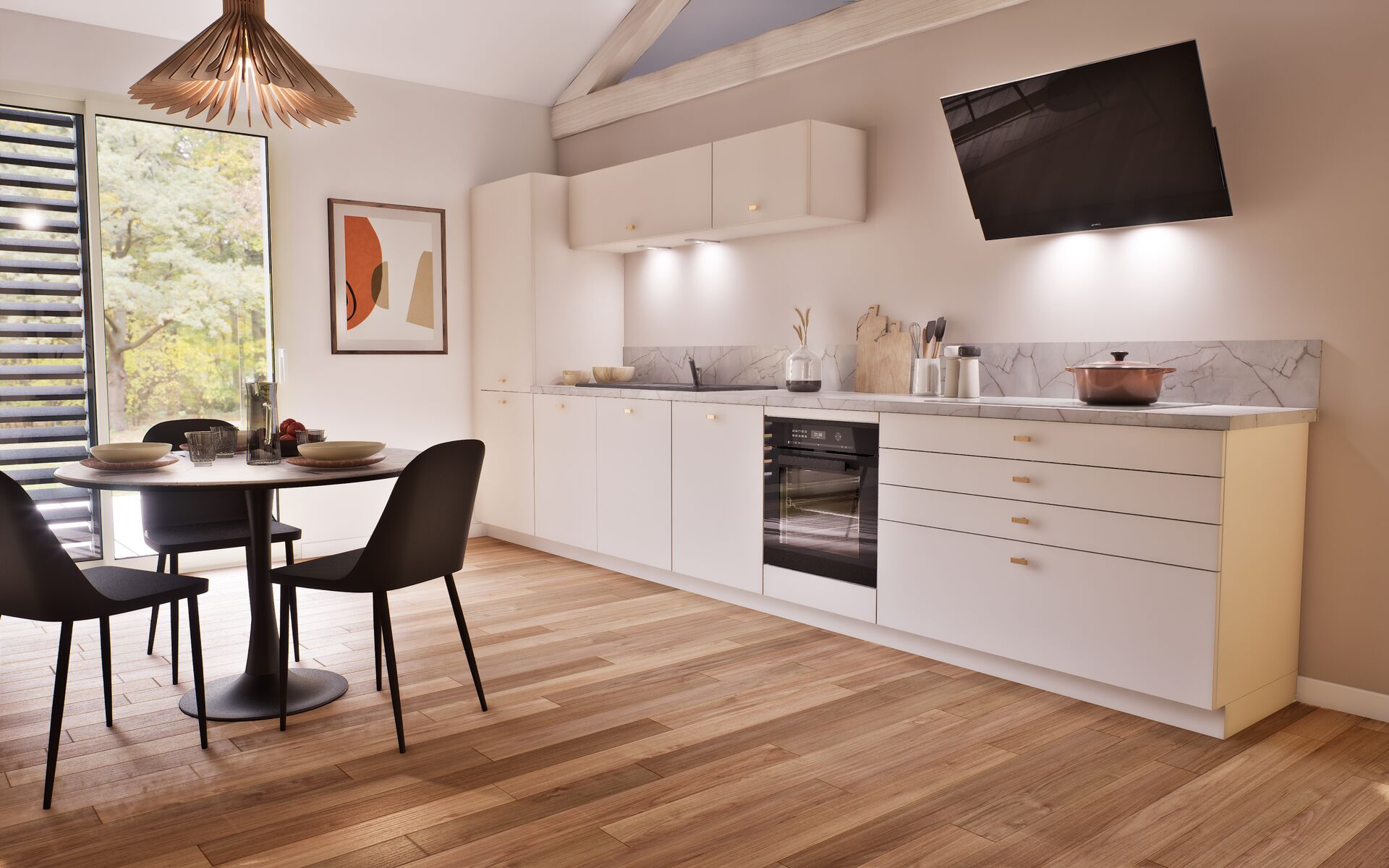 Pour celles et ceux qui recherchent une cuisine au design épuré et contemporain, nos modèles modernes sont conçus pour offrir une fonctionnalité optimale tout en ajoutant une touche élégante à votre intérieur. D’esthétique scandinave, conçues avec des matériaux de haute qualité, des finitions élégantes et des équipements dernier cri, vous bénéficierez d'une cuisine qui allie style et performance. Les lignes épurées, les surfaces lisses et les couleurs neutres ou audacieuses permettent de personnaliser chaque élément selon vos préférences, tout en optimisant l'espace disponible.