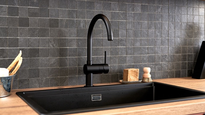 La robinetterie est très sollicitée dans votre cuisine et participe significativement à son rendu final. Chromée, satinée, graphique ou intemporelle, le choix est vaste ! Optez pour cette finition aspect noir mat pour créer la différence. Côté pratique, ce mitigeur GROHE est doté d'un bec haut pour remplir facilement les grands récipients.