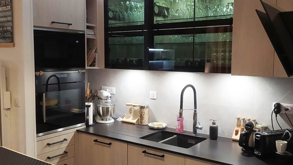 La personnalisation et le sur mesure, que nous proposons vous permet aussi d'adapter la cuisine à l'espace disponible et l'agencement de votre intérieur. À titre d'exemple, si vous avez une pente de toit dans la pièce, notre concepteur prévoit les rangements en conséquence.