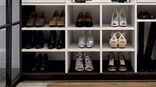 Op deze planken kunt u in een minimale ruimte heel wat hoge hakken kwijt. Bovendien wordt uw hele collectie mooi gepresenteerd door de lichte kanteling.