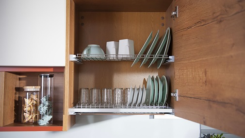 Houdt u niet van vaat die op de rand van de spoelbak droogt? Voor een altijd netjes werkblad kunt u een droogrekmeubel plaatsen. De vaat kan dan buiten het gezichtsveld drogen.