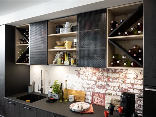 Tijd om aan het eten te beginnen? Grote, wegklapbare deuren openen vlotjes en maken ruimte voor een handig werkblad… Het front schuift opzij en maakt zich voor even onzichtbaar… om daarna weer te verschijnen en alles moeiteloos aan het oog te onttrekken.
