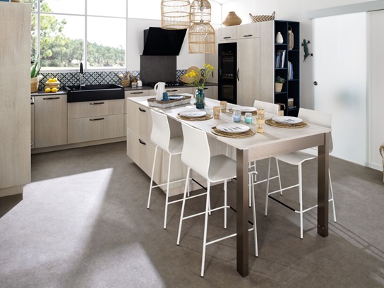 De randen zijn recht of afgerond, afhankelijk van de stijl en de plaats in de keuken, en u kunt zelfs met de dikte spelen. Zo is er geruststellend massief van 78 mm, bijvoorbeeld voor een bar. Of wat dacht u van een strakke dikte van 20 mm om designmeubels te accentueren? Wissel af, combineer, stapel, snij uit… Met laminaat zijn alle stijlen toegestaan, voor een heel afgemeten prijs!